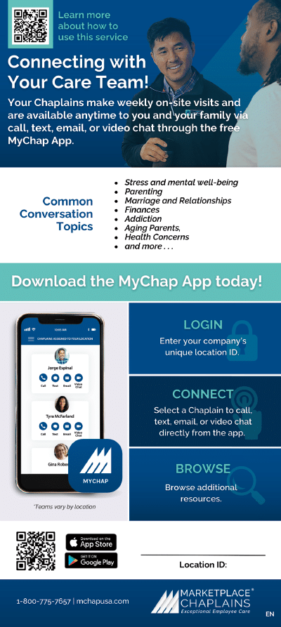 Updated start-up brochure with detailed information for employees to understand the services chaplains provide.
